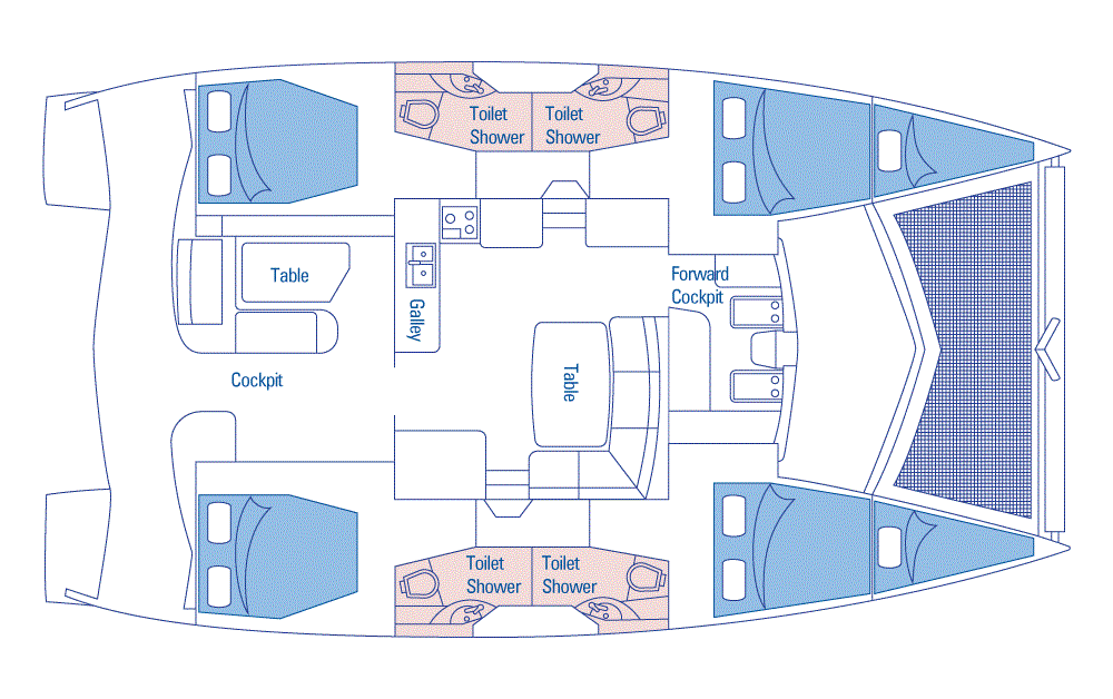 The Leopard 44 combines comfort, space, and performance, making it perfect for families or groups of up to four couples. With four private cabins each with an ensuite, plus full air-conditioning, everyone can relax in style. Natural light floods the interior through large portholes, while the forward cockpit door provides excellent ventilation and seamless indoor-outdoor living. Affordable yet luxurious, Madeline promises an unforgettable Whitsundays sailing adventure.